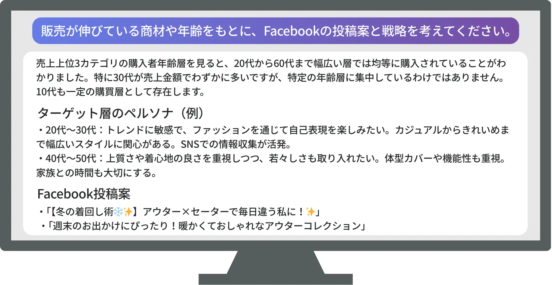 具体的な施策を提示させることも可能です。
